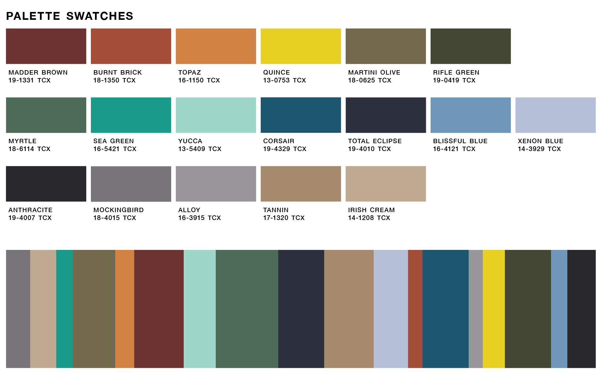 The Chameleon palette reveals colors with grounded energy that appear at home in any landscape. Warm spiced browns, mineral greens, and mountain blues discover balance with clay orange, luminous yellow, and cloudy periwinkle.